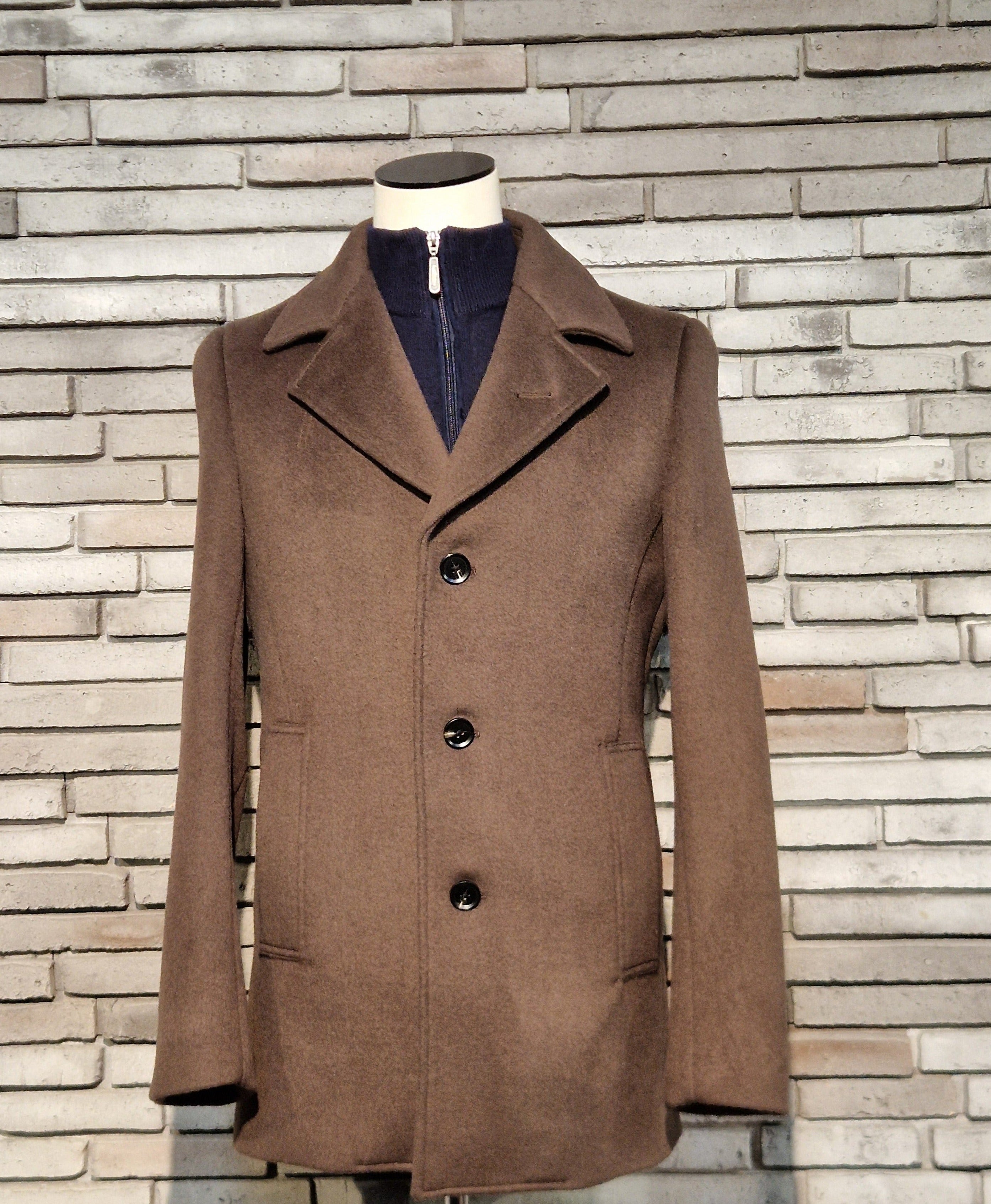Men's Single Breasted Chocolate Wool Coat-Front View