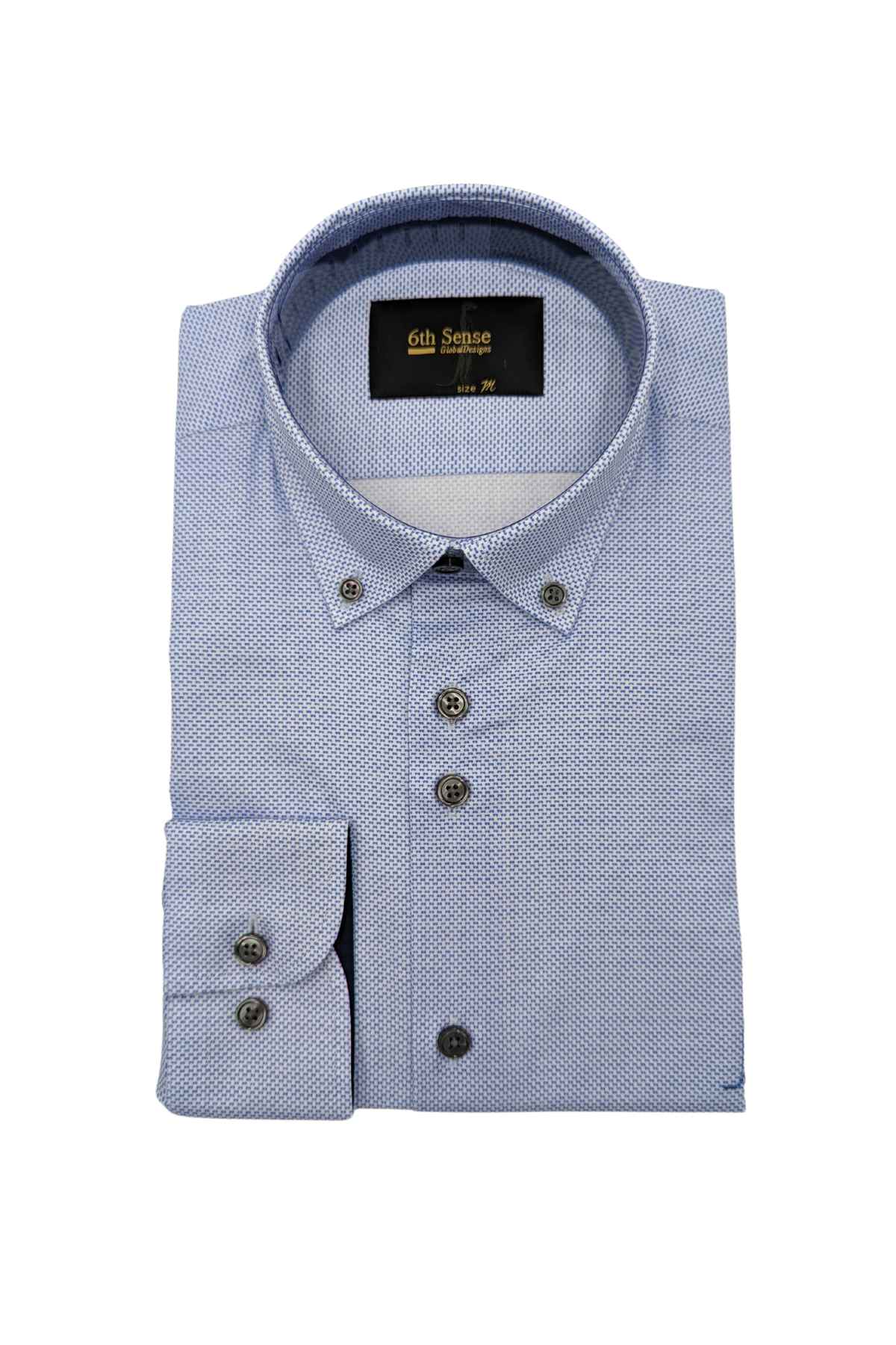 Cac Twill Blue Long Sleeve Shirt with contrasting navy buttons