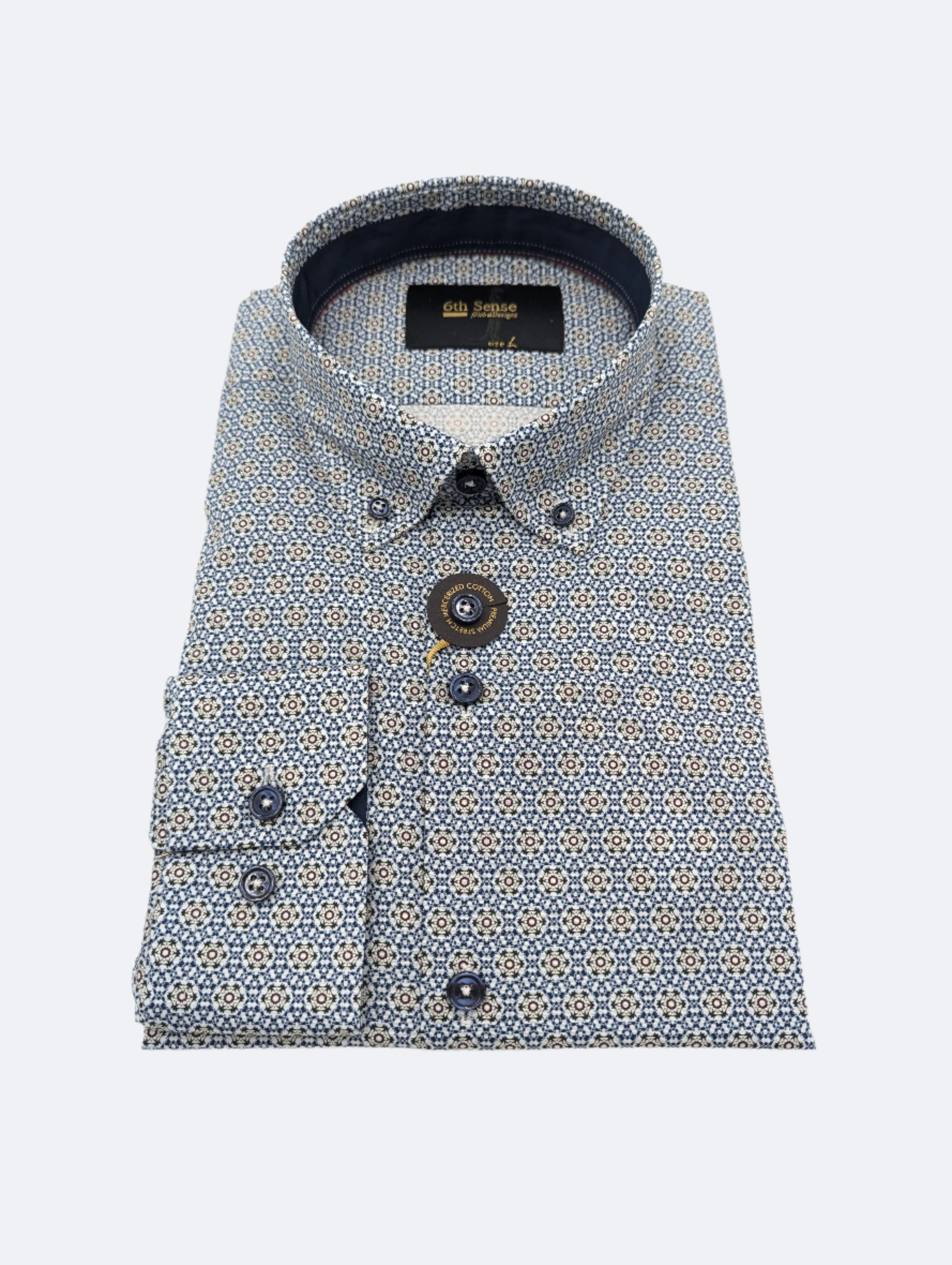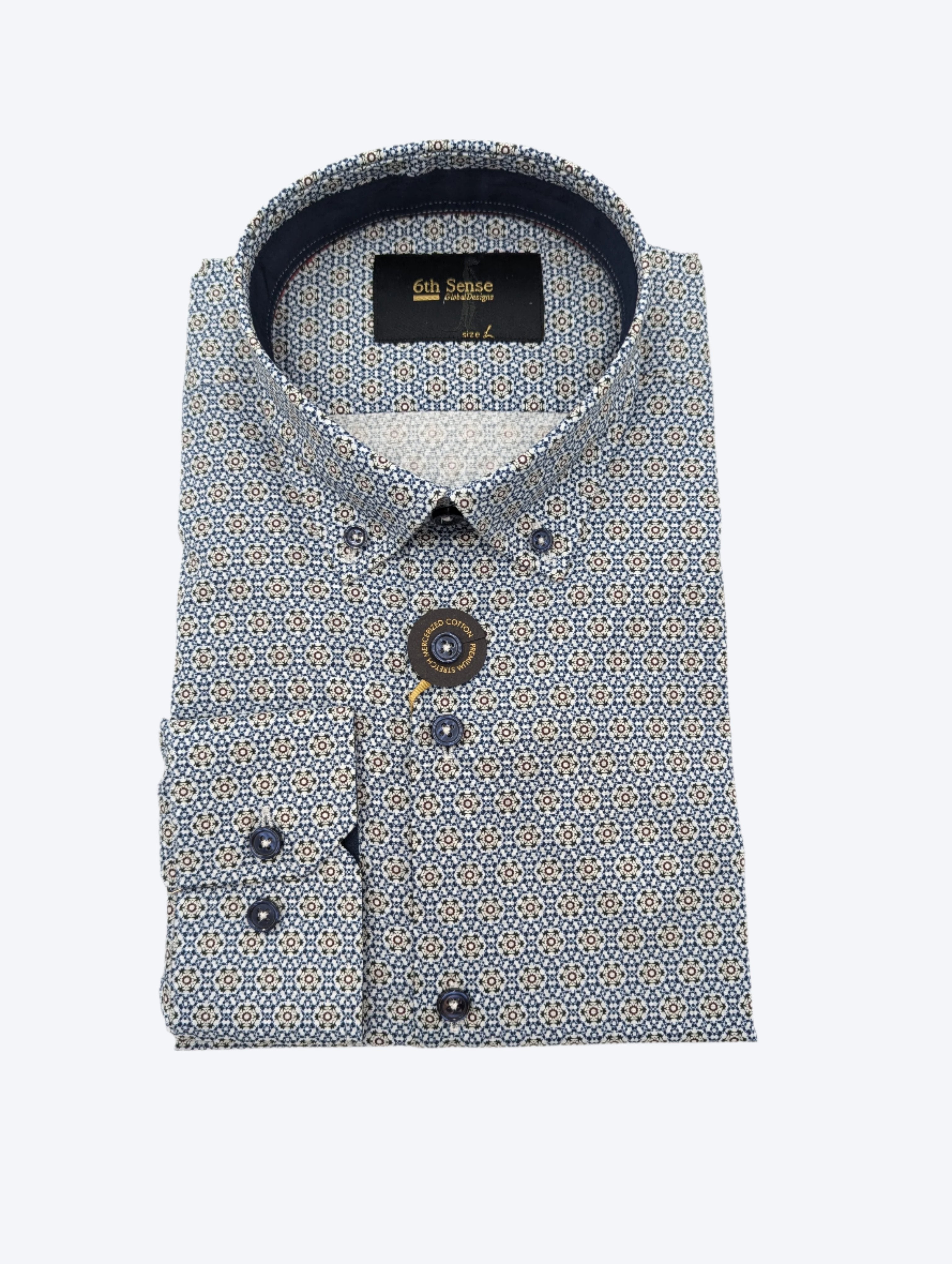 Men's Button Down Navy/Blue Pattern Shirt-Front View