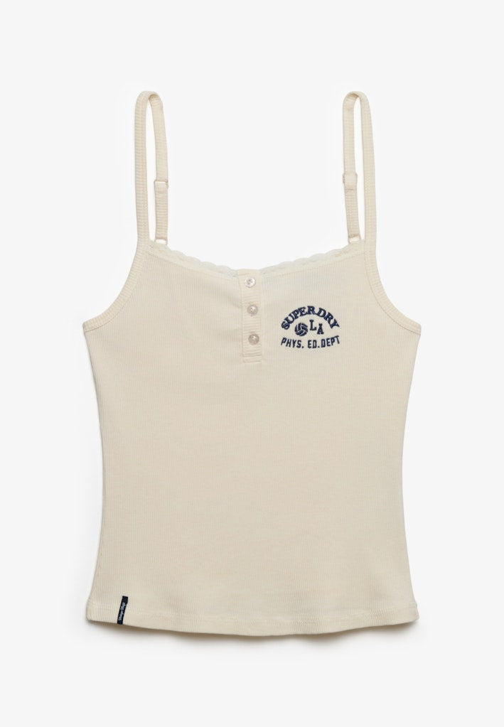 Athletic Embroider Button Cami-Off White