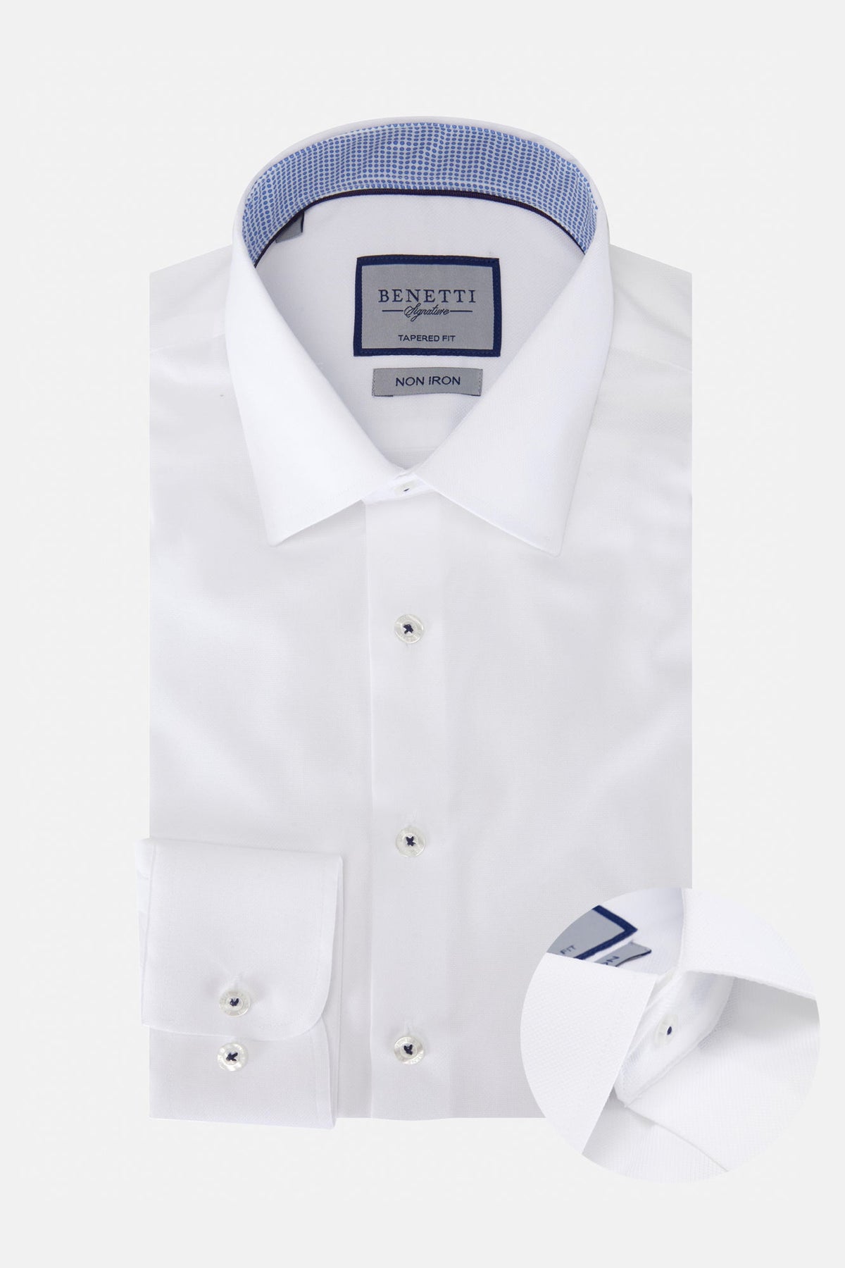 Introducing the Brad tapered fit white shirt from Benetti Menswear! This waffle textured fabric shirt offers a perfect fit for any formal occasion - not too slim, not too loose. Make a statement at weddings, graduations, and more. Elevate your style with this must-have wardrobe staple.