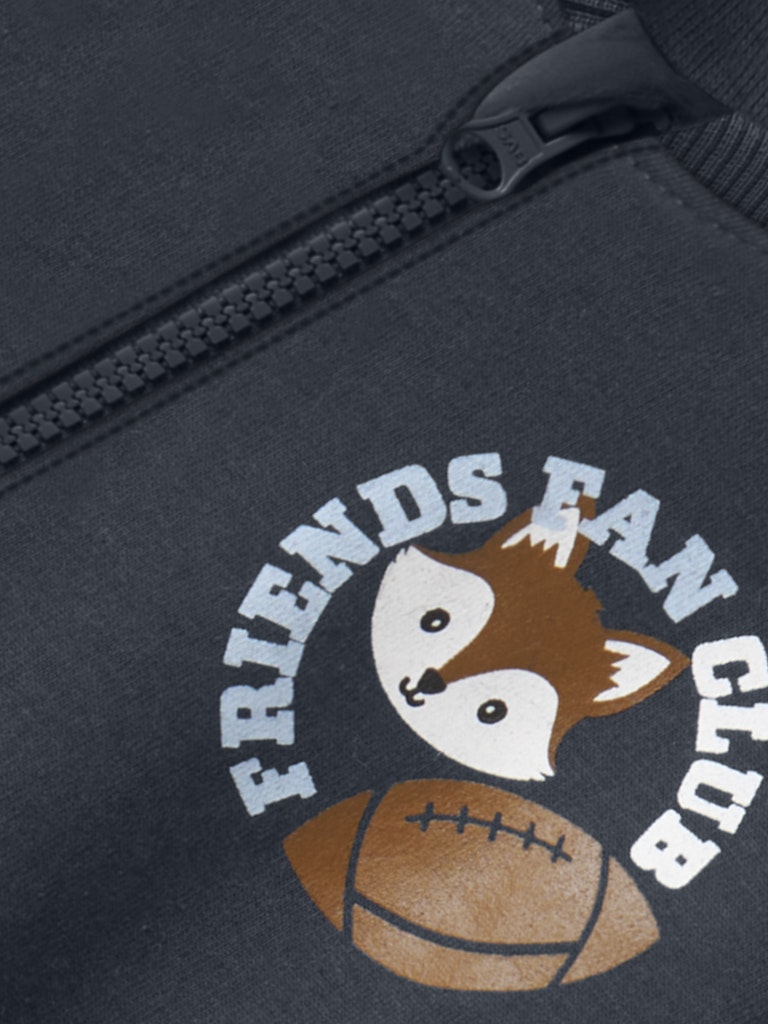 This navy jumpsuit for children combines comfort and style with a practical zip fastening for easy dressing. Featuring ribbed hems on the legs, it ensures a snug fit that stays in place during play. Perfect for everyday wear, it offers a sleek look while keeping your child cozy and ready for any adventure.
