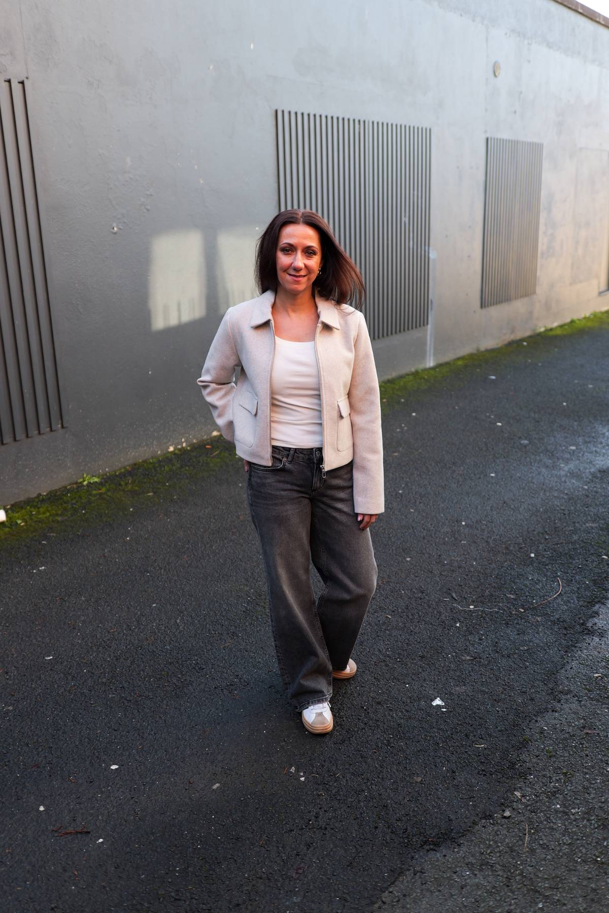 A stylish short jacket in soft pumice stone melange that works beautifully layered or worn alone. Quality construction and a flattering cut make it a wardrobe essential for year-round wear.