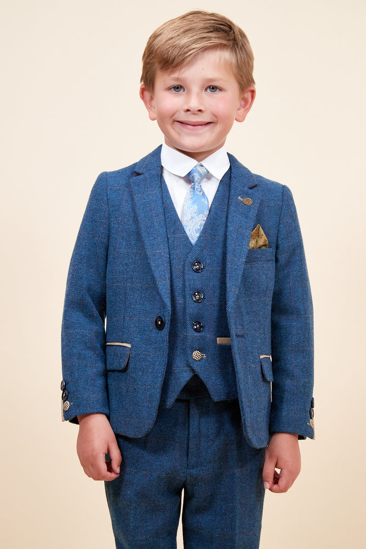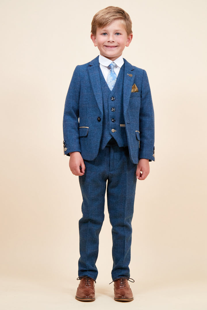 Harry Boy 3 Piece Indigo Tweed Suit-Model view