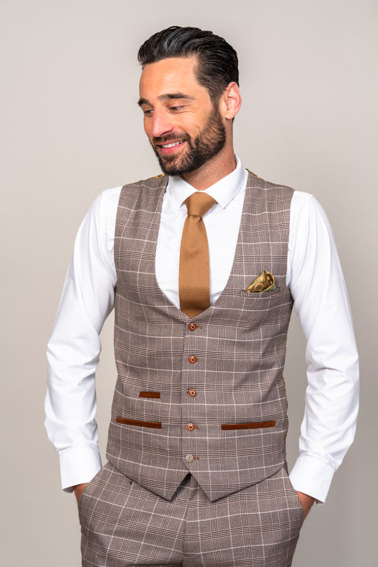 Men's Ray Tan Check Tapered Fit Trousers-Front View