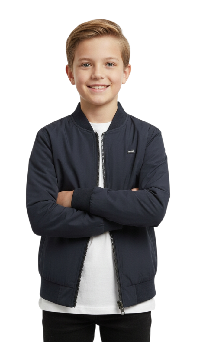 Elevate your son's formal wardrobe with this striking Bishop Navy Boys Jacket. Featuring a bold Diesel logo on the chest and a classic bomber-style collar, this piece combines contemporary style with timeless sophistication. Whether he's celebrating a Confirmation, Communion, or attending a special occasion, this jacket delivers the perfect blend of comfort and elegance. The navy shade pairs effortlessly with chinos or smart casual wear, making it an investment piece that transitions beautifully from formal events to everyday styling. Designed for the modern young gentleman who refuses to compromise on style.
