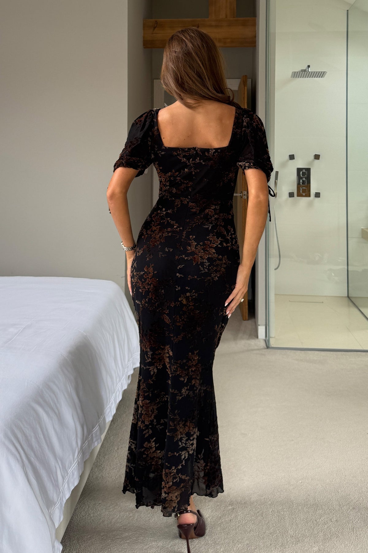 Dove Ruched Detail Midi Dress In Flocked Floral