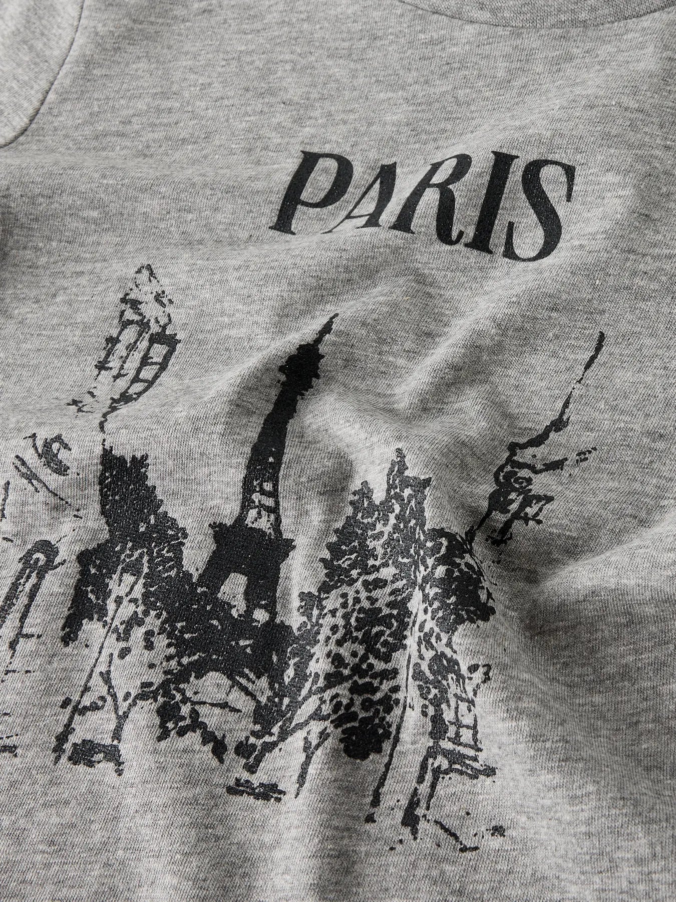 Gray shirt with black 'PARIS' text and Eiffel Tower design.