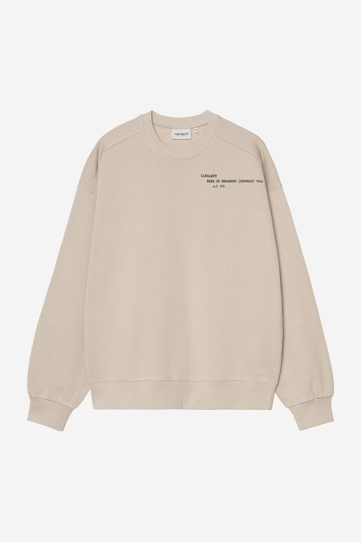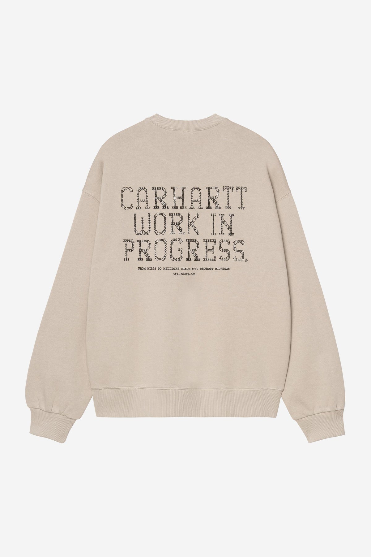 The Punched Sweatshirt is made from a heavyweight, unbrushed cotton fabric with a tactile loopback construction. It’s cut in a balloon fit, which is a little looser and boxier, but also characterized by dropped shoulders and ribbed trims. Graphic prints appear on the front and back.