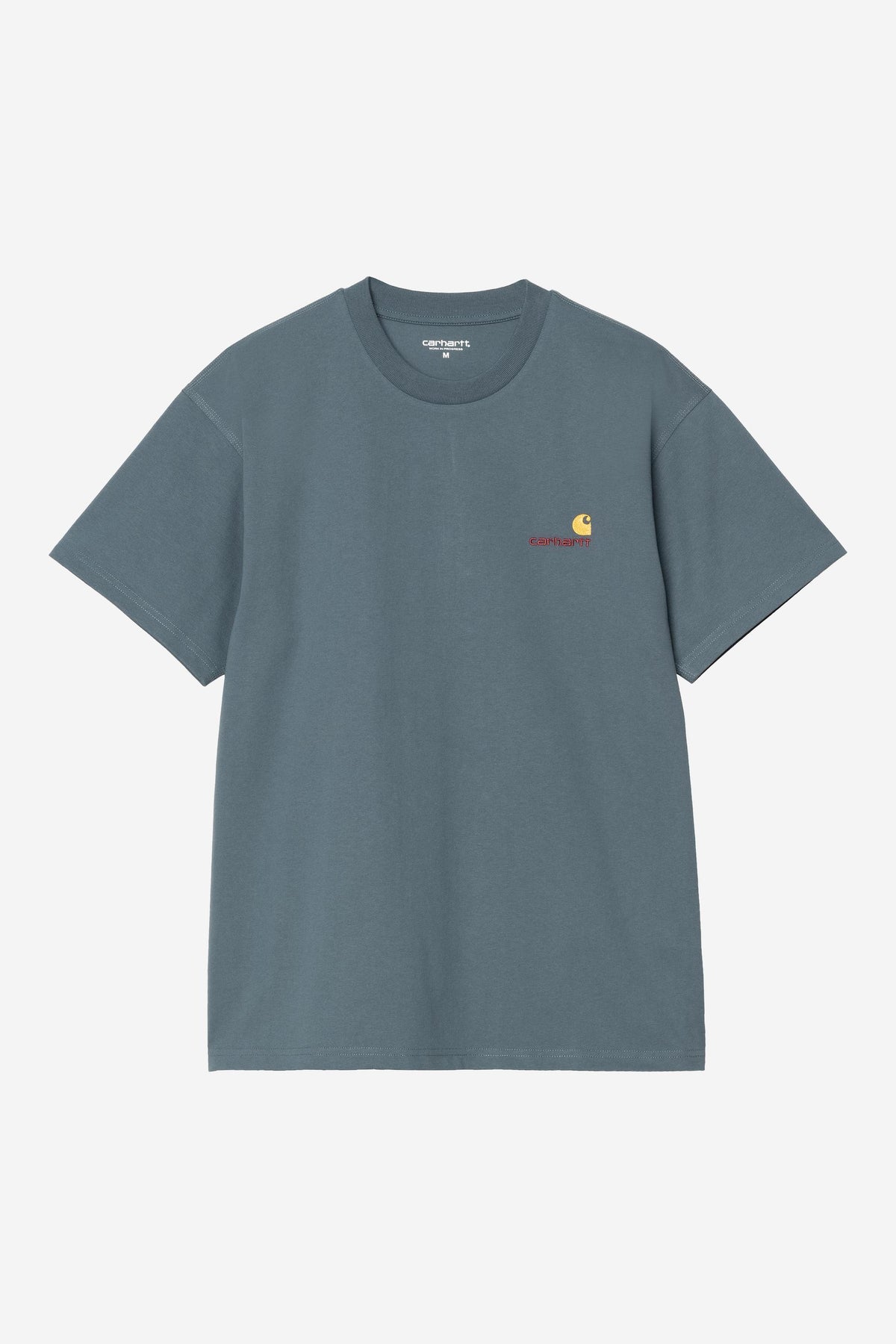 Crafted from sustainable organic cotton in a relaxed silhouette, this short-sleeve tee showcases striking two-tone American Script embroidery across the chest. The midweight jersey fabric offers comfort and durability for everyday wear, while the classic design makes it a versatile staple that effortlessly elevates your casual wardrobe.