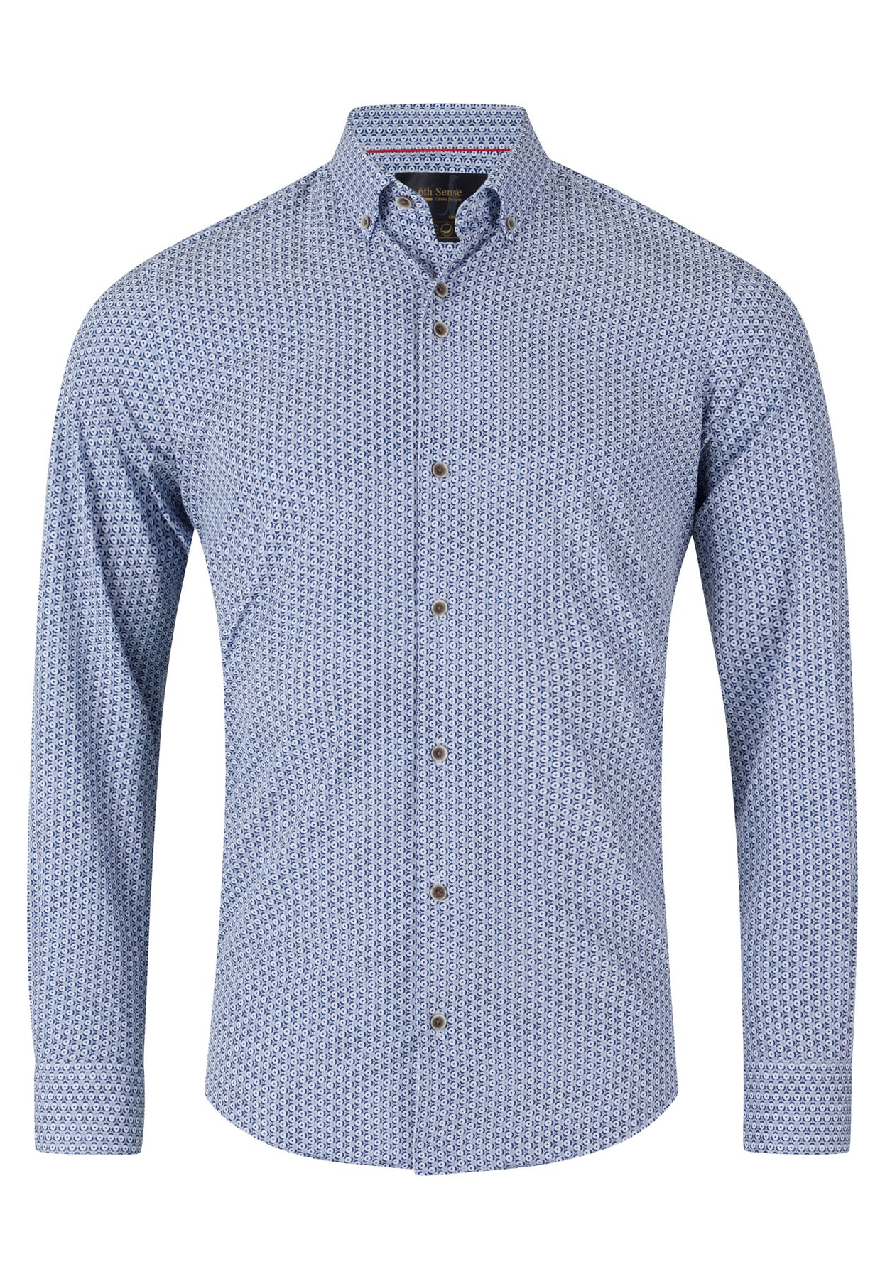 The Performance 10 Navy Grey Circle Pattern Shirt features a classic button-down collar that adds a polished touch to your look. Designed for comfort and style, this shirt is perfect for any occasion where you want to feel confident and sharp.