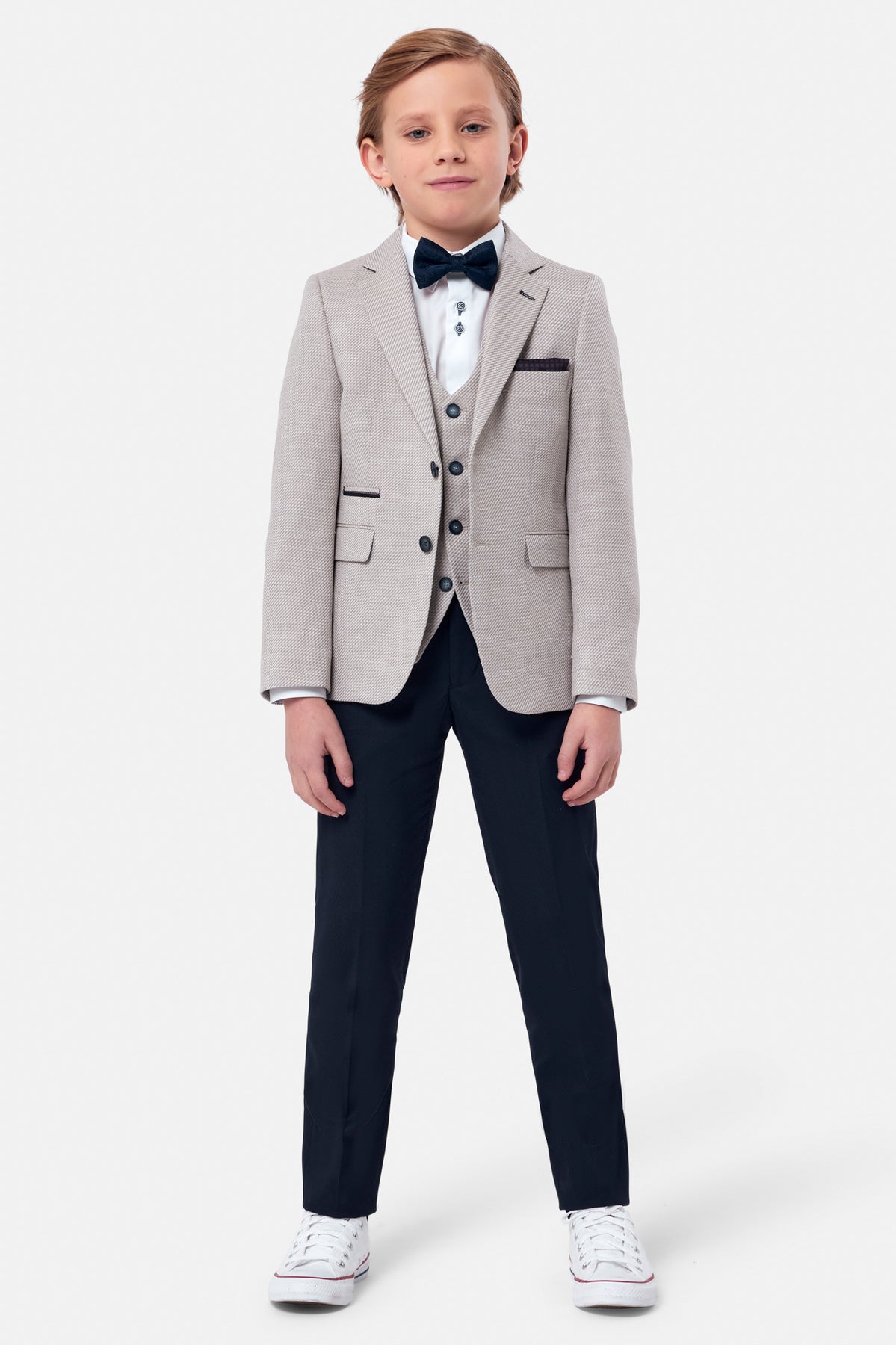 The Harold boys beige blazer by Benetti Menswear is a sophisticated jacket that bridges formal and casual wear with effortless style. Crafted with meticulous attention to detail, this tailored piece mirrors the acclaimed men's Lucas collection, offering young wearers a refined aesthetic for special occasions like Communions and celebrations, while remaining versatile enough for everyday elegance. The sage hue adds contemporary flair to any wardrobe, making it an investment in timeless dressing that grows with your son.