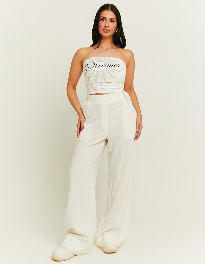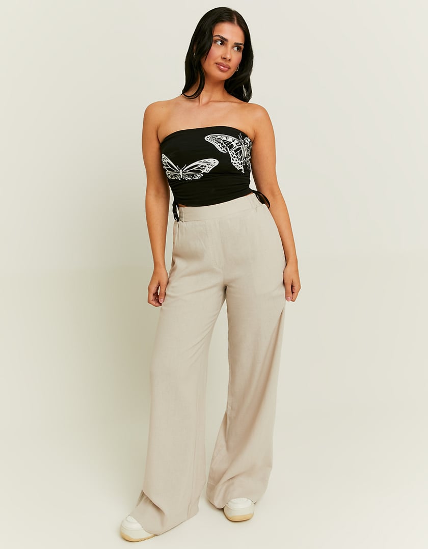 Ladies Green Wide Leg Linen Pants-Model Front View