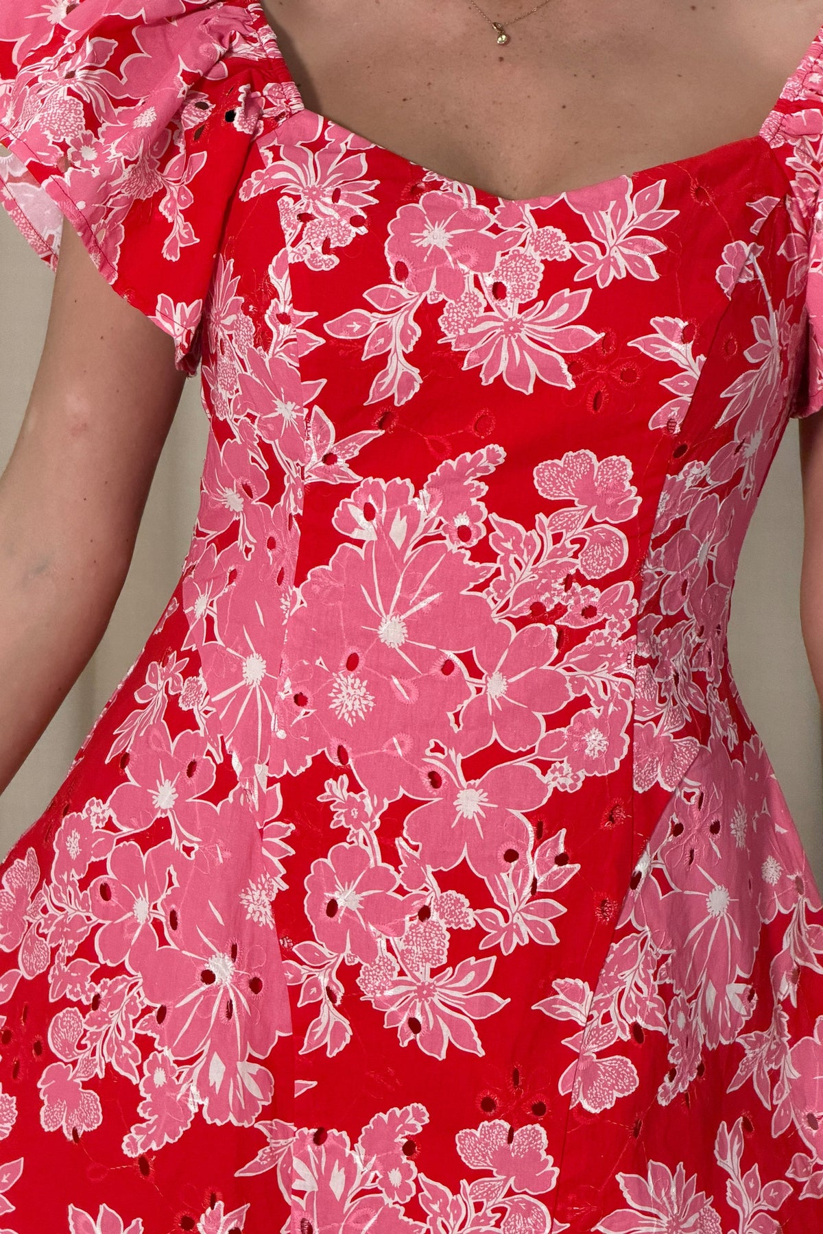 Alex Broiderie Anglais Pink/Red Mini Dress