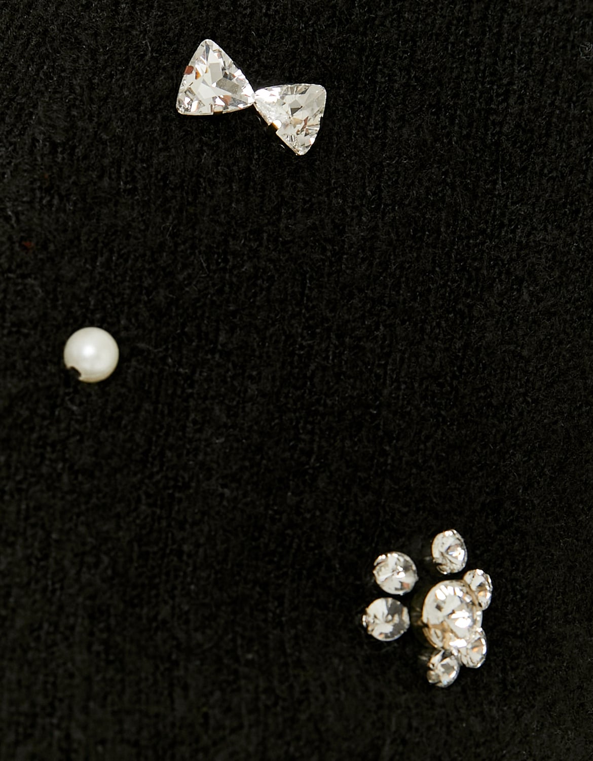 Black knitted cardigan from Tally Weijl featuring sparkling rhinestone details. Versatile and elegant, it layers beautifully over any outfit and works for both casual and dressy occasions. A timeless wardrobe essential.
