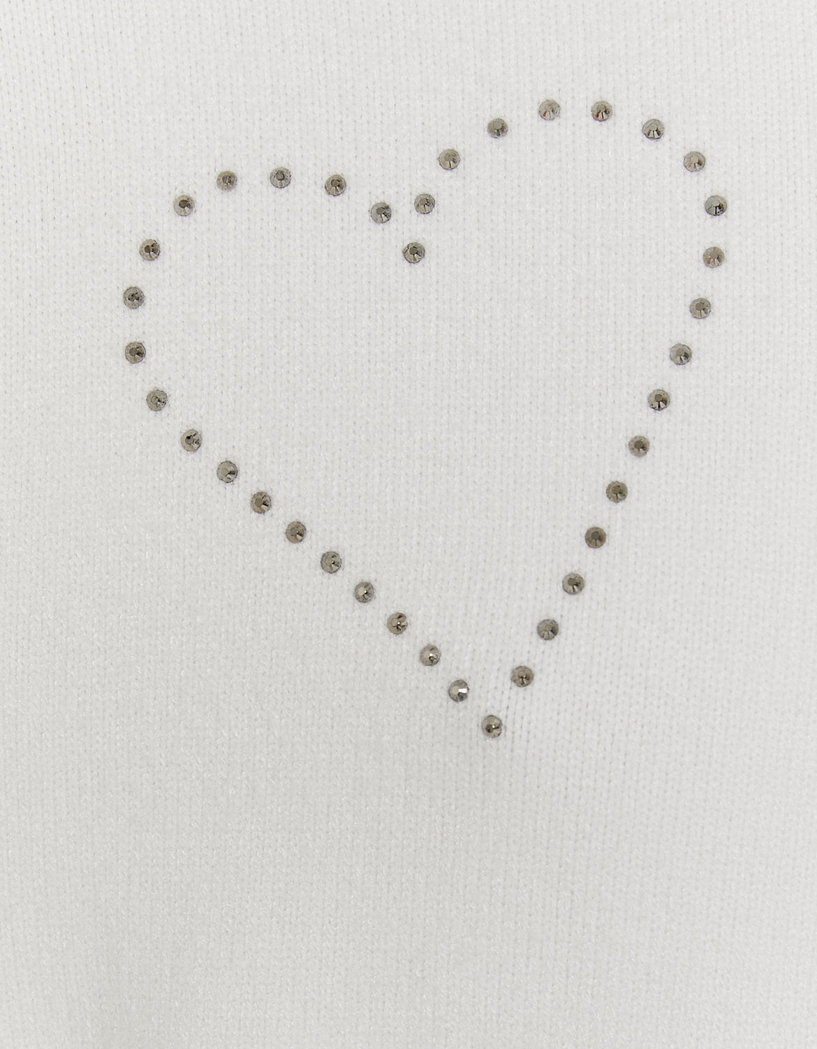 A chic white knit sweater featuring rhinestone details that add instant glamour. Comfortable, versatile, and perfect for for everyday wear.