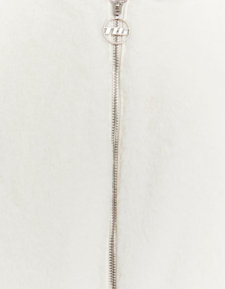 Ladies White Faux Fur Jacket-Zip Fastening View